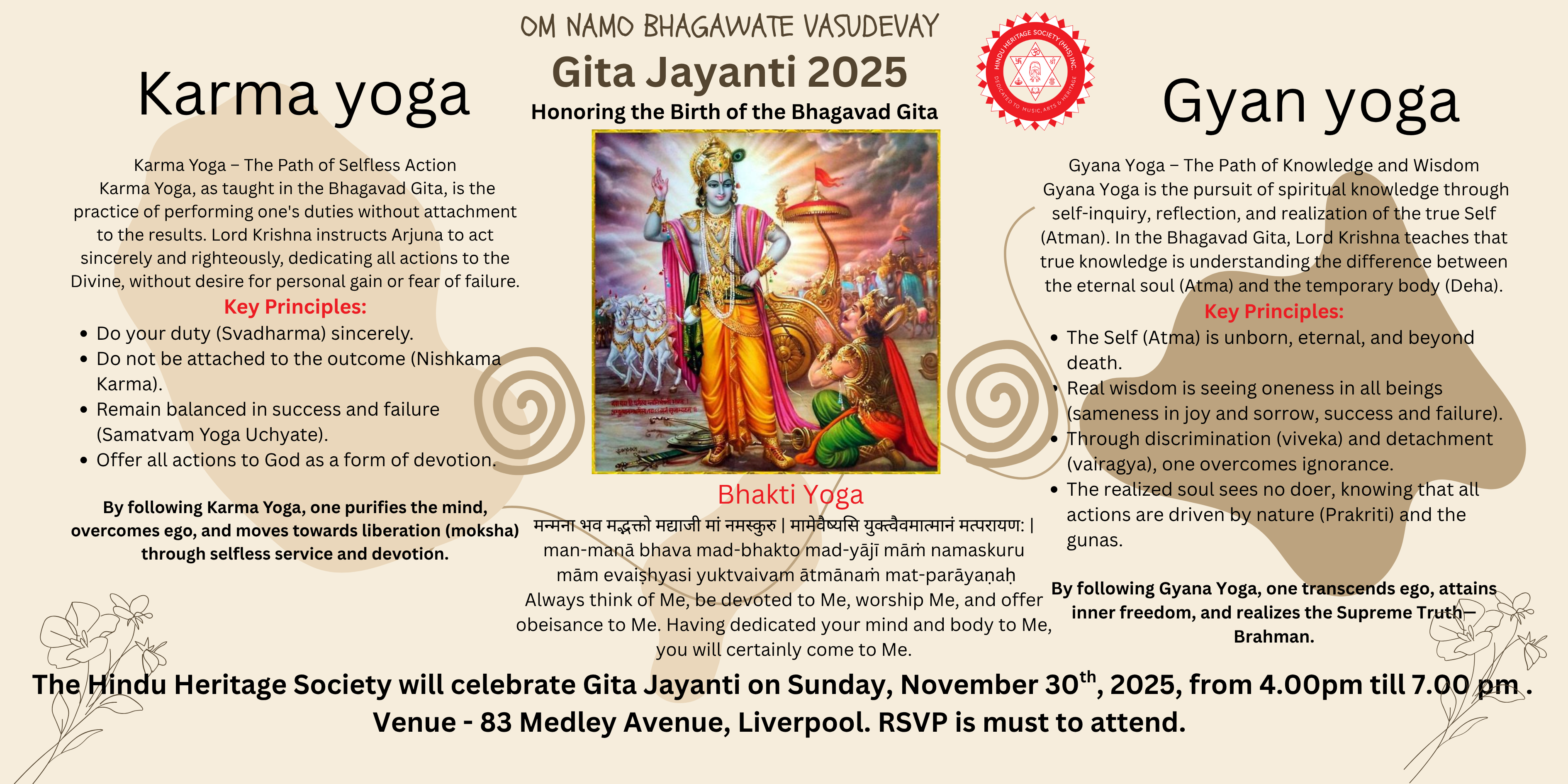 This year, it will be observed on Monday, 1st December 2025 (Margashirsha Shukla Ekadashi). The Gita, the “Song of God,” offers timeless guidance on dharma (duty), karma (action), and bhakti (devotion), inspiring a purposeful and spiritual life.